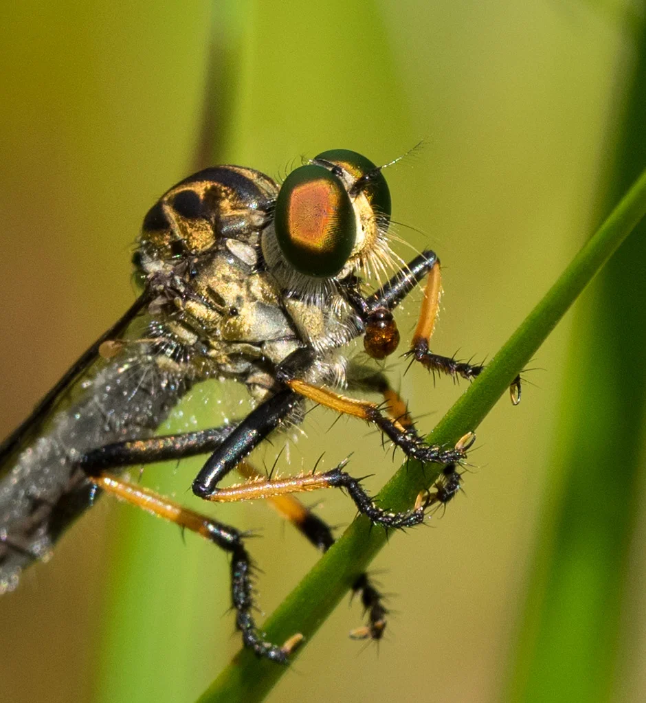 One robber fly grabs an early snack.