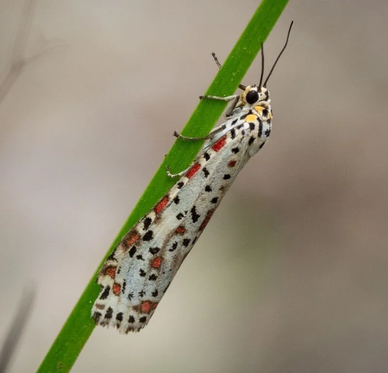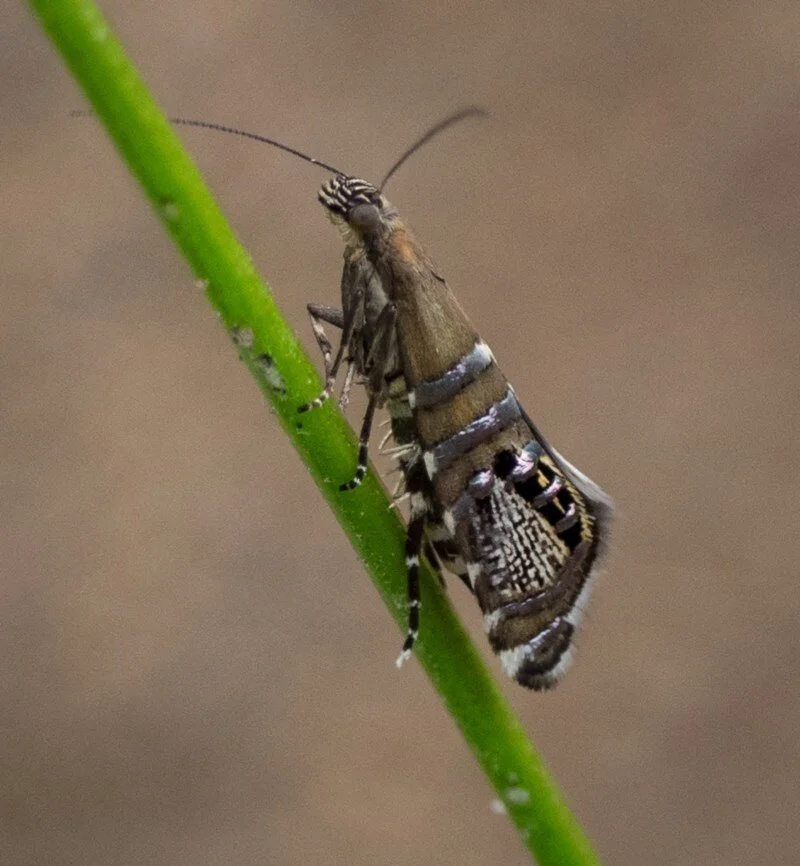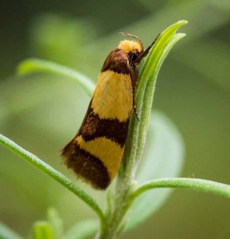 The selection below illustrates the great diversity in their form and colouration. They range in size from the 15cm wingspan Helena Gum Moth (first photo) to the tiny 2mm long White Eye-capped Moth (last photo). Lovely things - all of them!