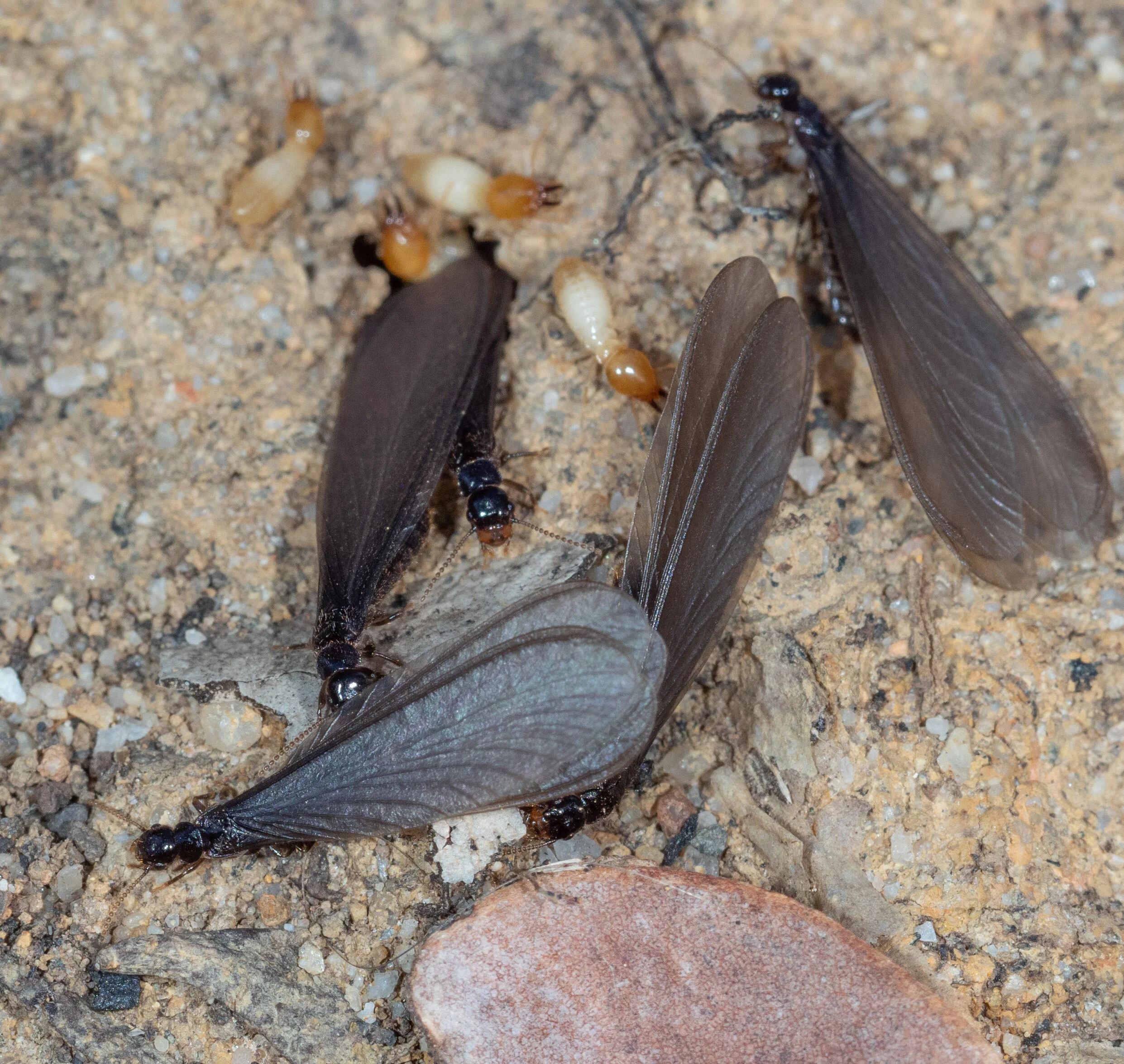 I collected a pair of termites and photographed them to show sexual differences. Females are longer than males and have a fatter abdomen with fewer terminal segments.