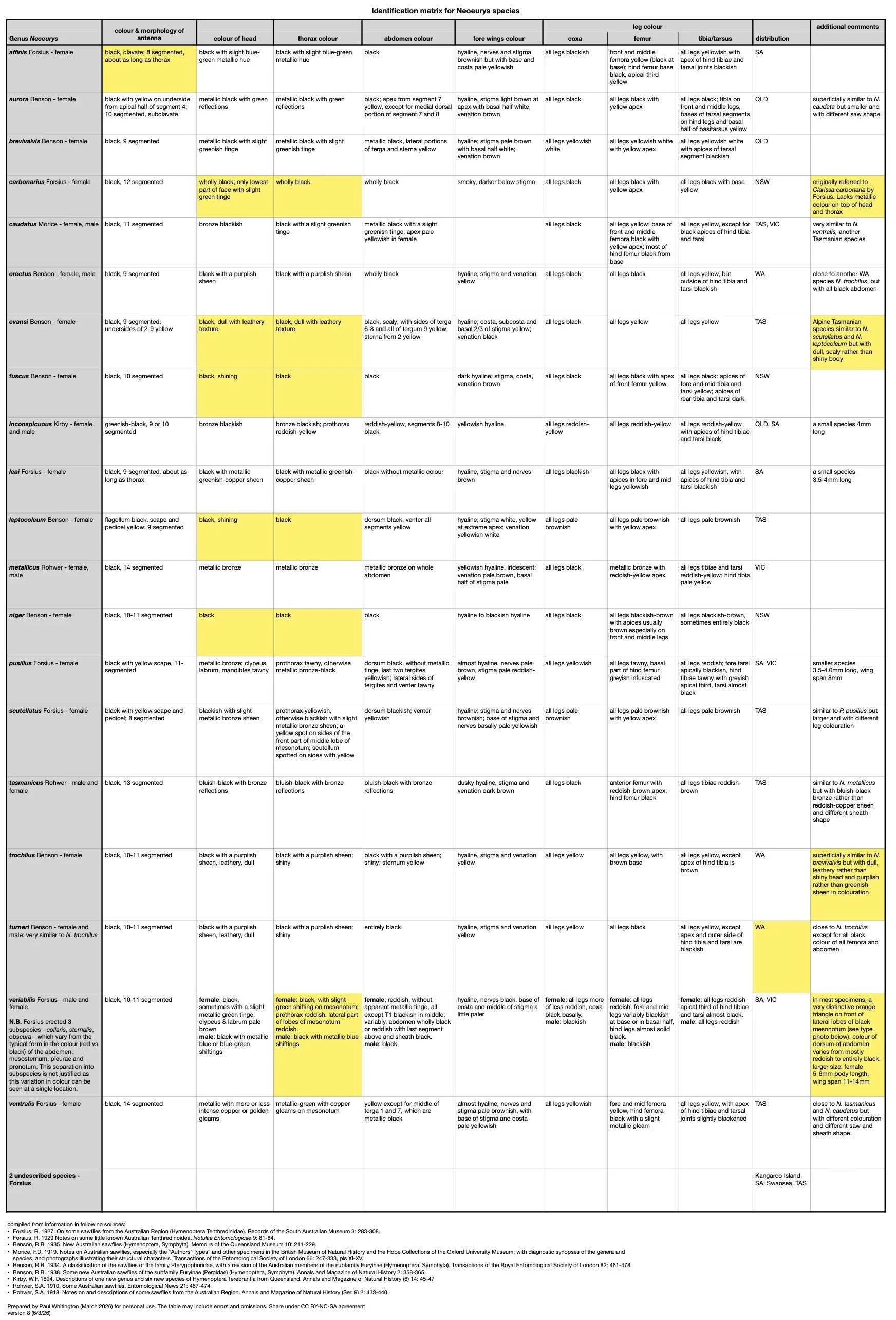 Benson, R.B. 1935. New Australian sawflies (Hymenoptera, Symphyta). Memoirs of the Queensland Museum 10: 211-229.
