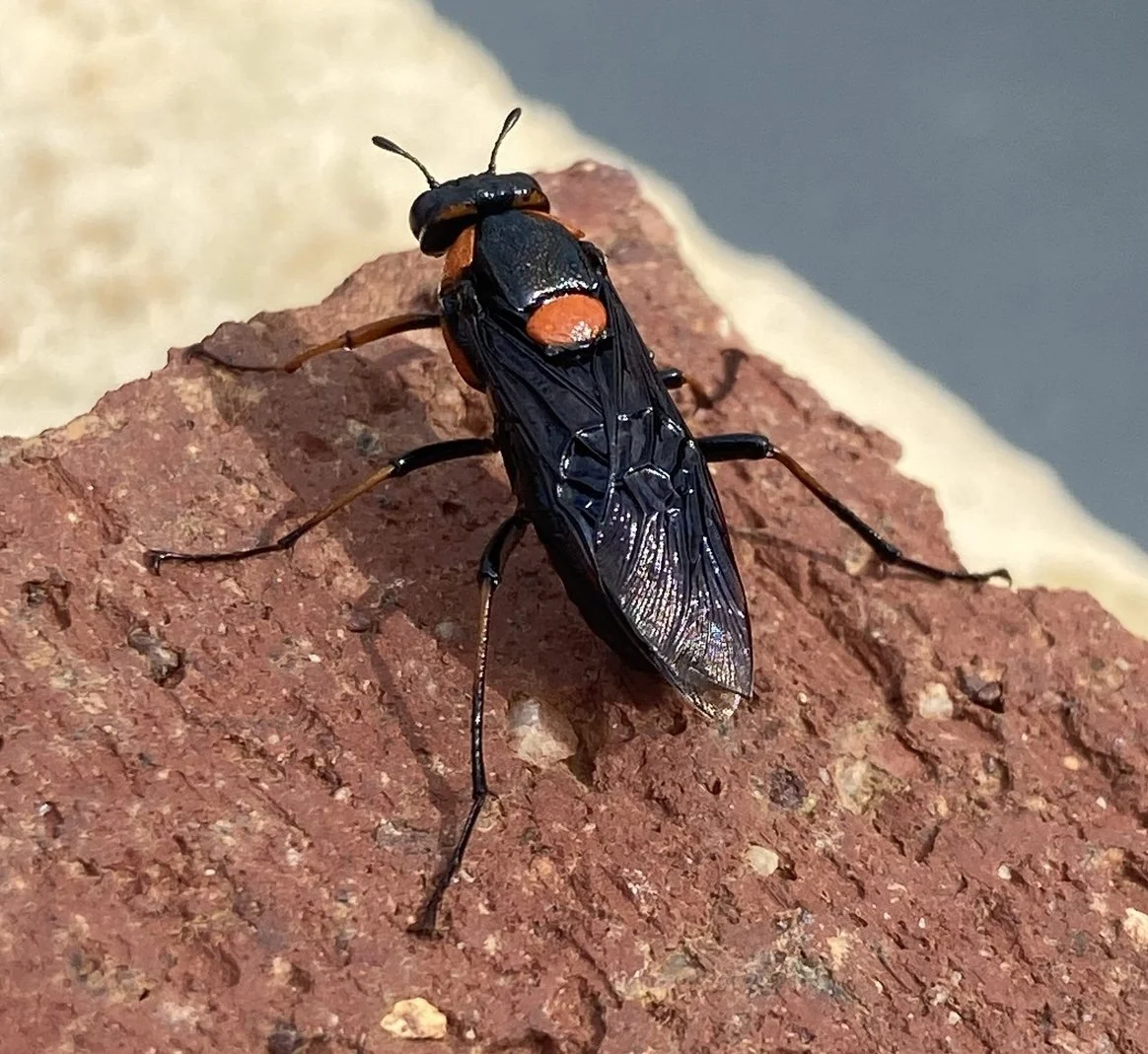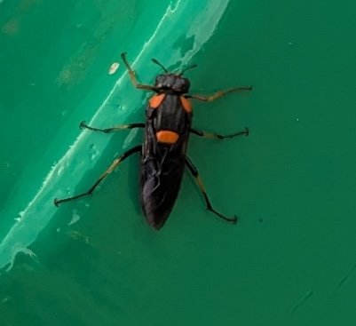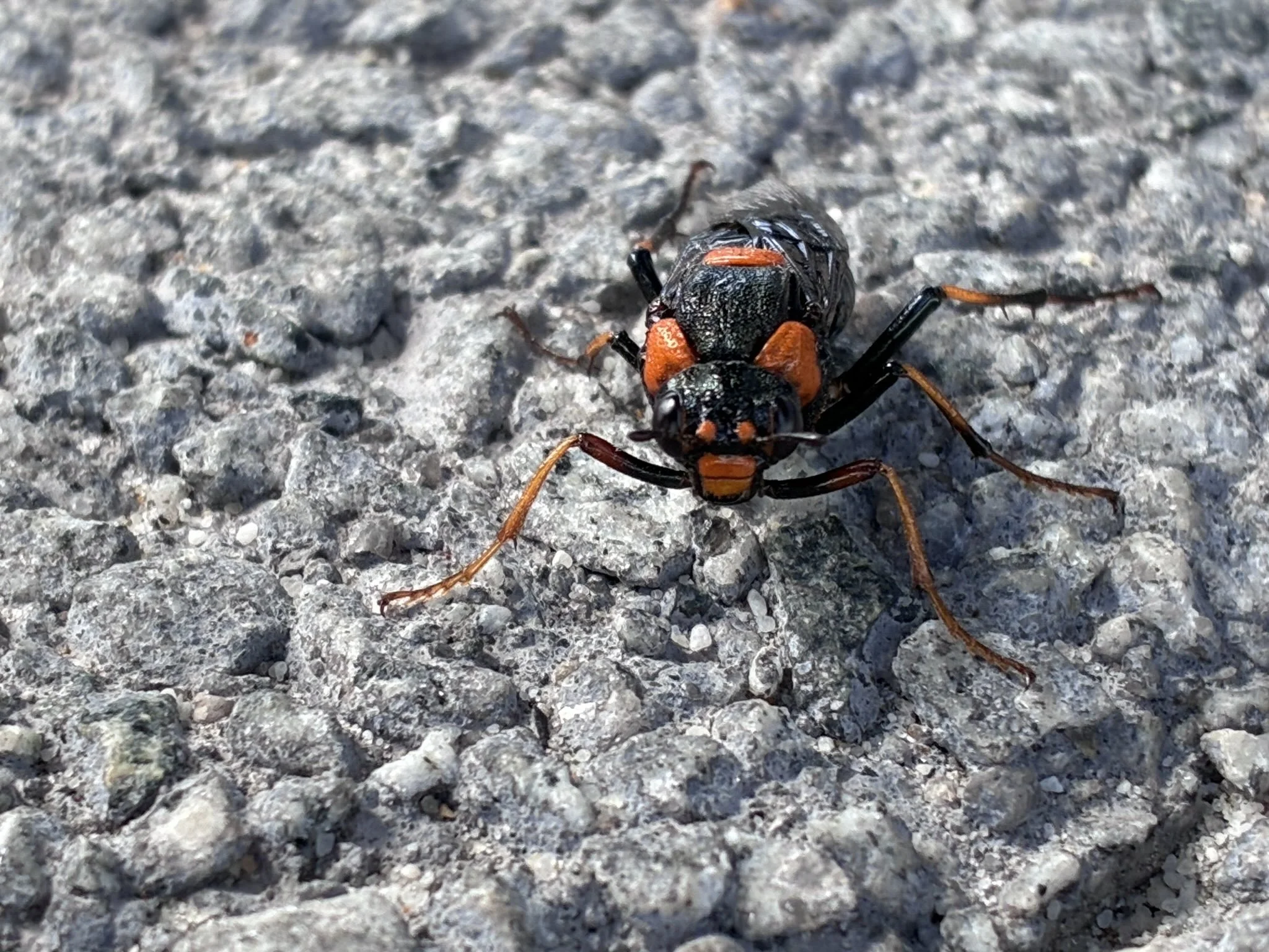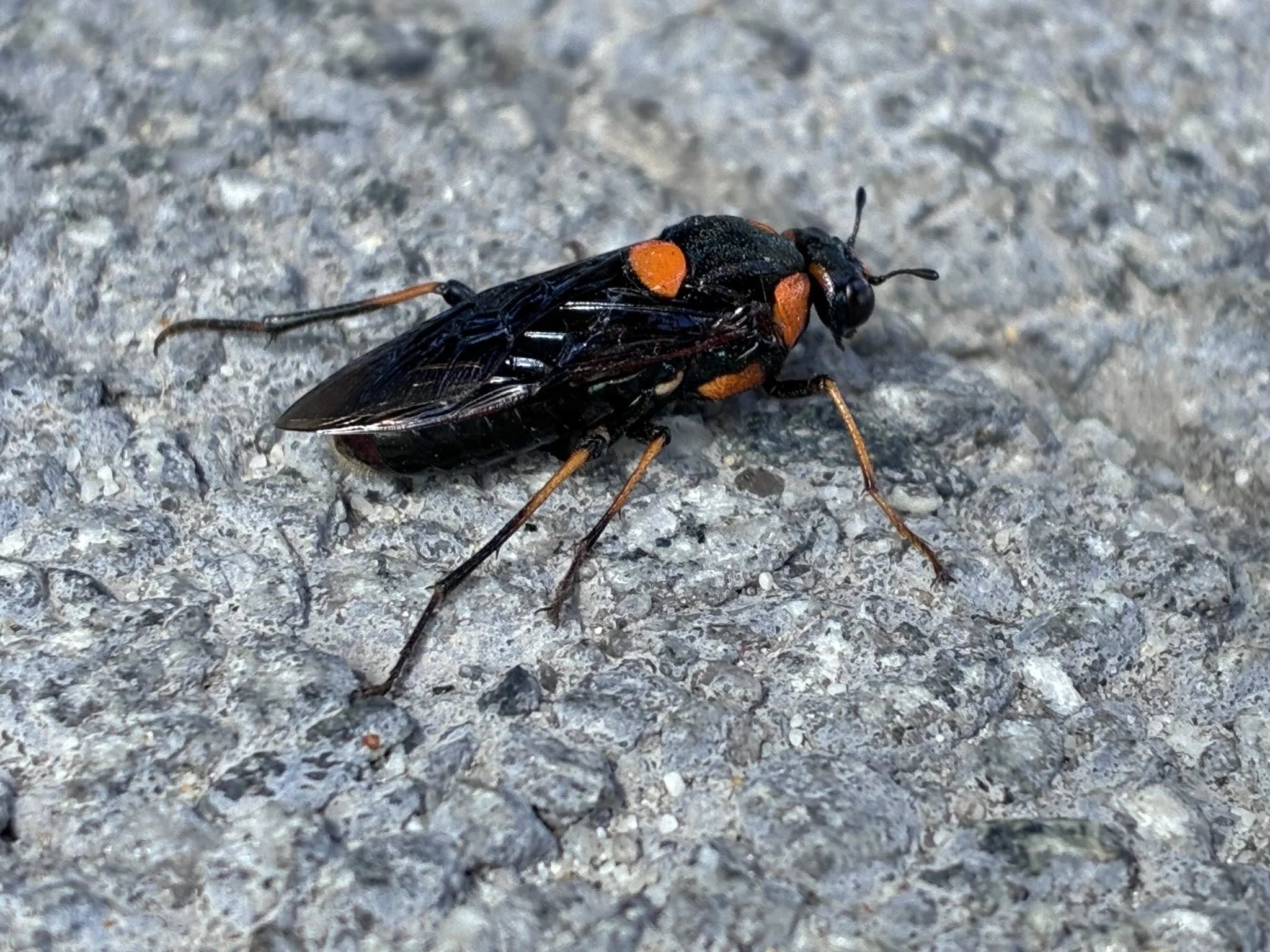 Relatively large size (approximately same as P. schiodtei?). Body all black, apart from following body parts which are bright tangerine in colour:
