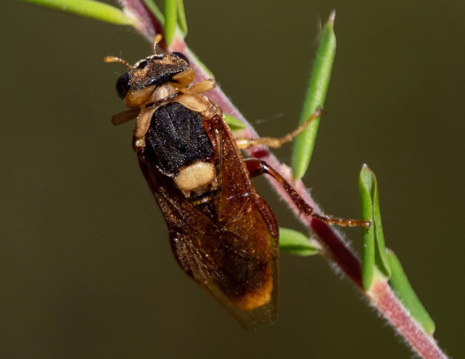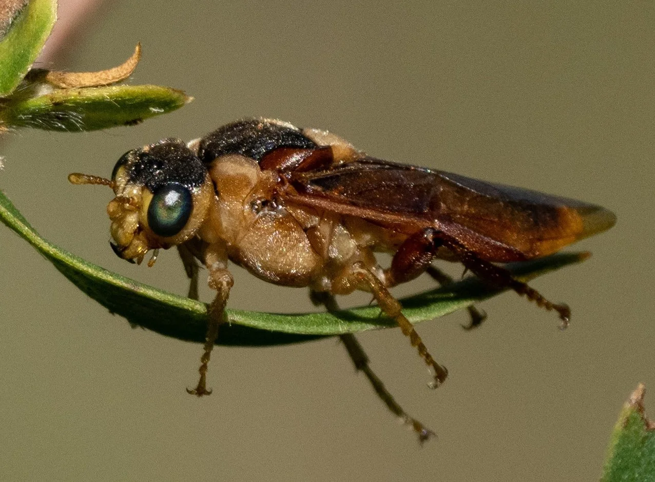 Male Pseudoperga guerinii (#PW042) found on 11/4/2025 clutching an Acacia leaf.