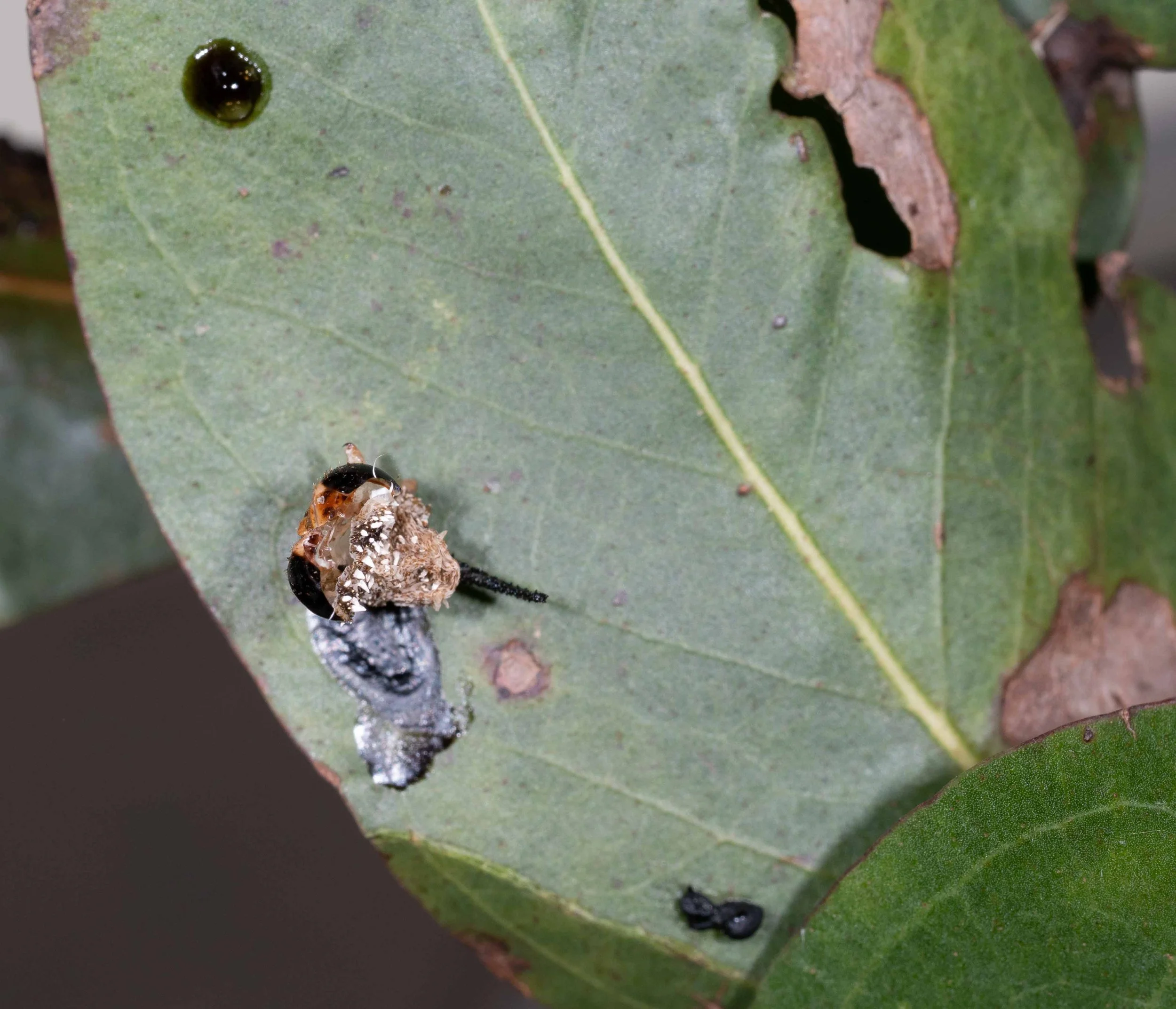 Tracing development of a clutch of 14 Pterygophorinae larvae feeding on leaves of an epicormic branch of E. globoidea on Lot 6 track, near junction with wombat track.