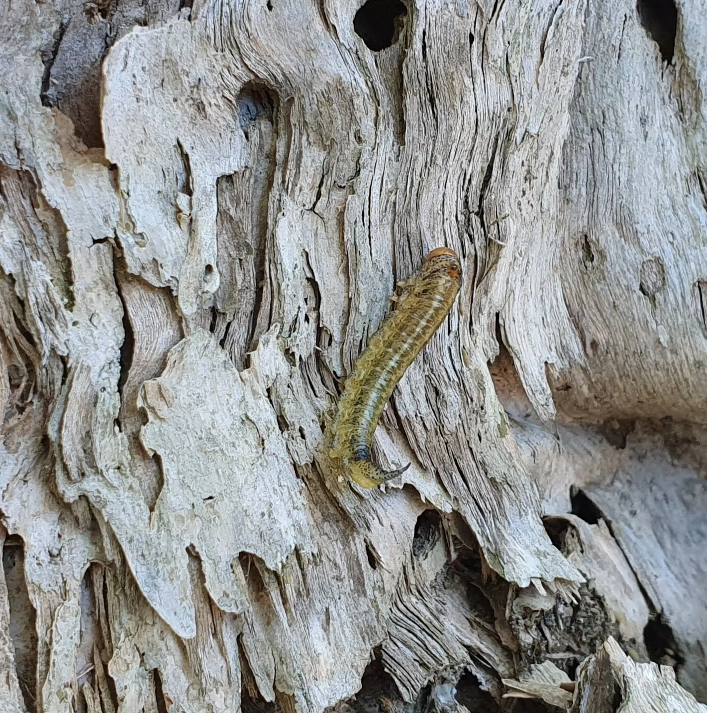 Following panel of photos from iNaturalist observation by kirrrkus in Margaret River area, WA. Larva feeding on Melaleuca thymoides.