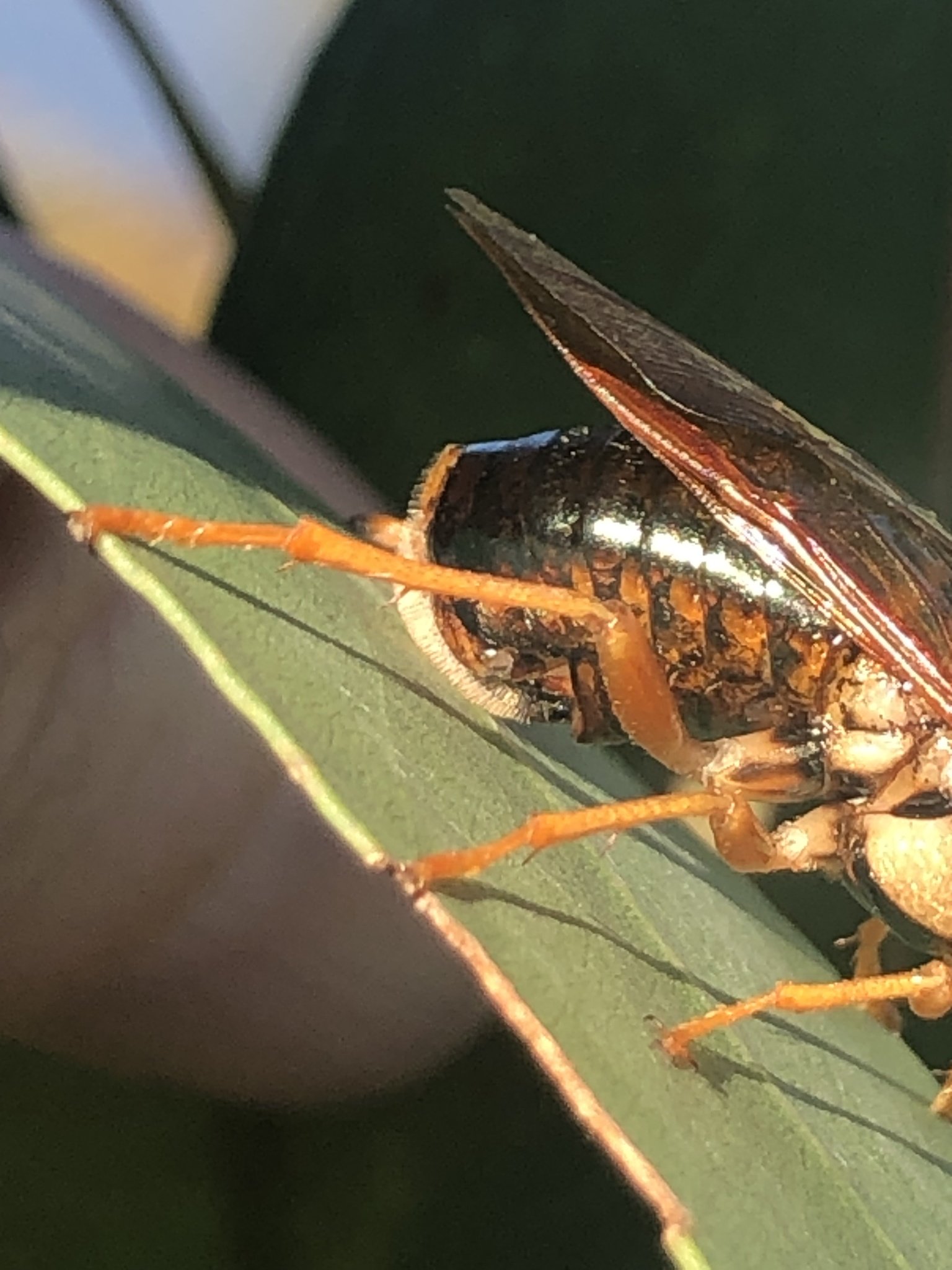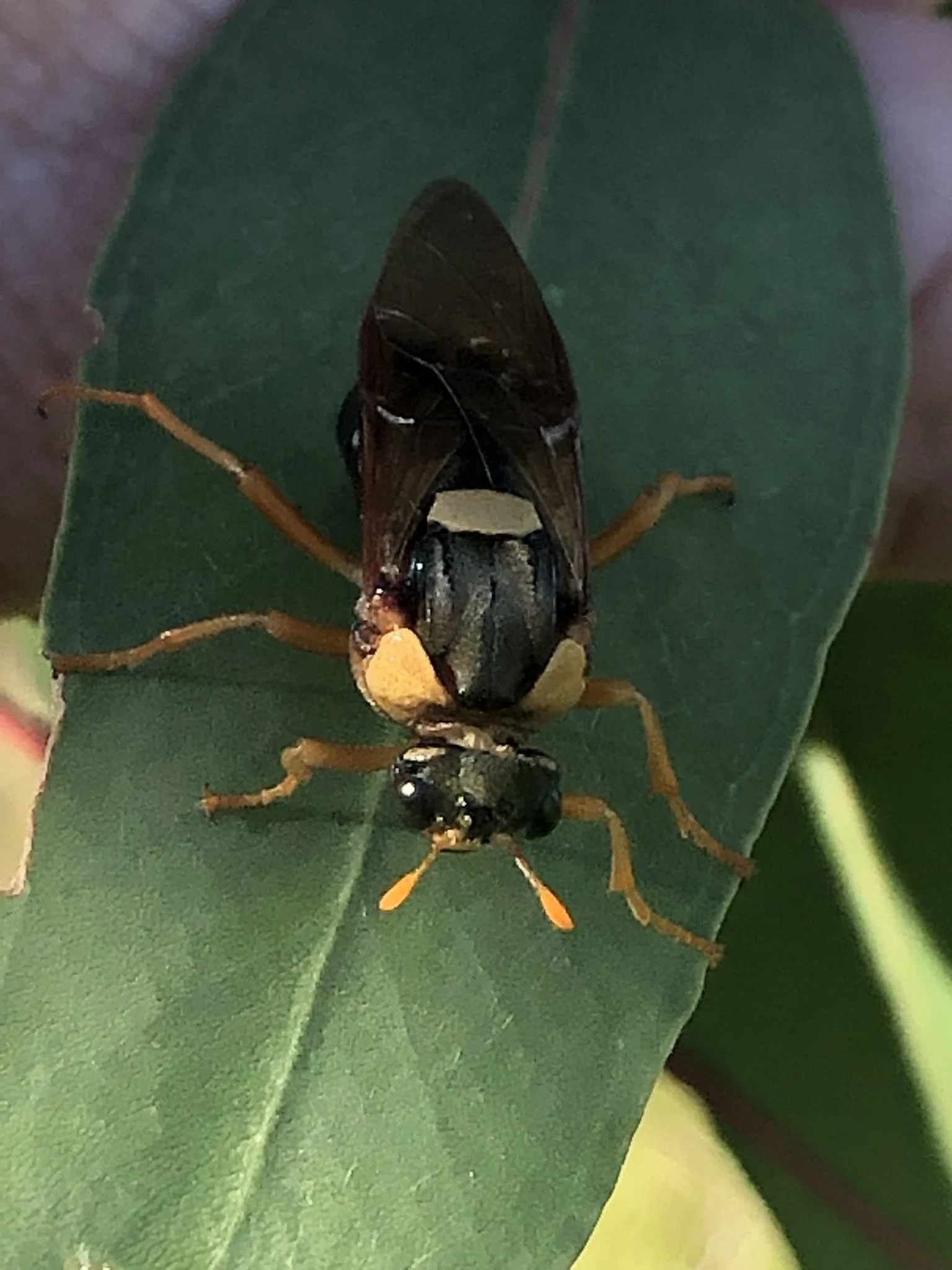 This female was collected in the field on March 31, 2026. It was straddling a eucalypt leaf, probably about to start abrading the leaf surface.