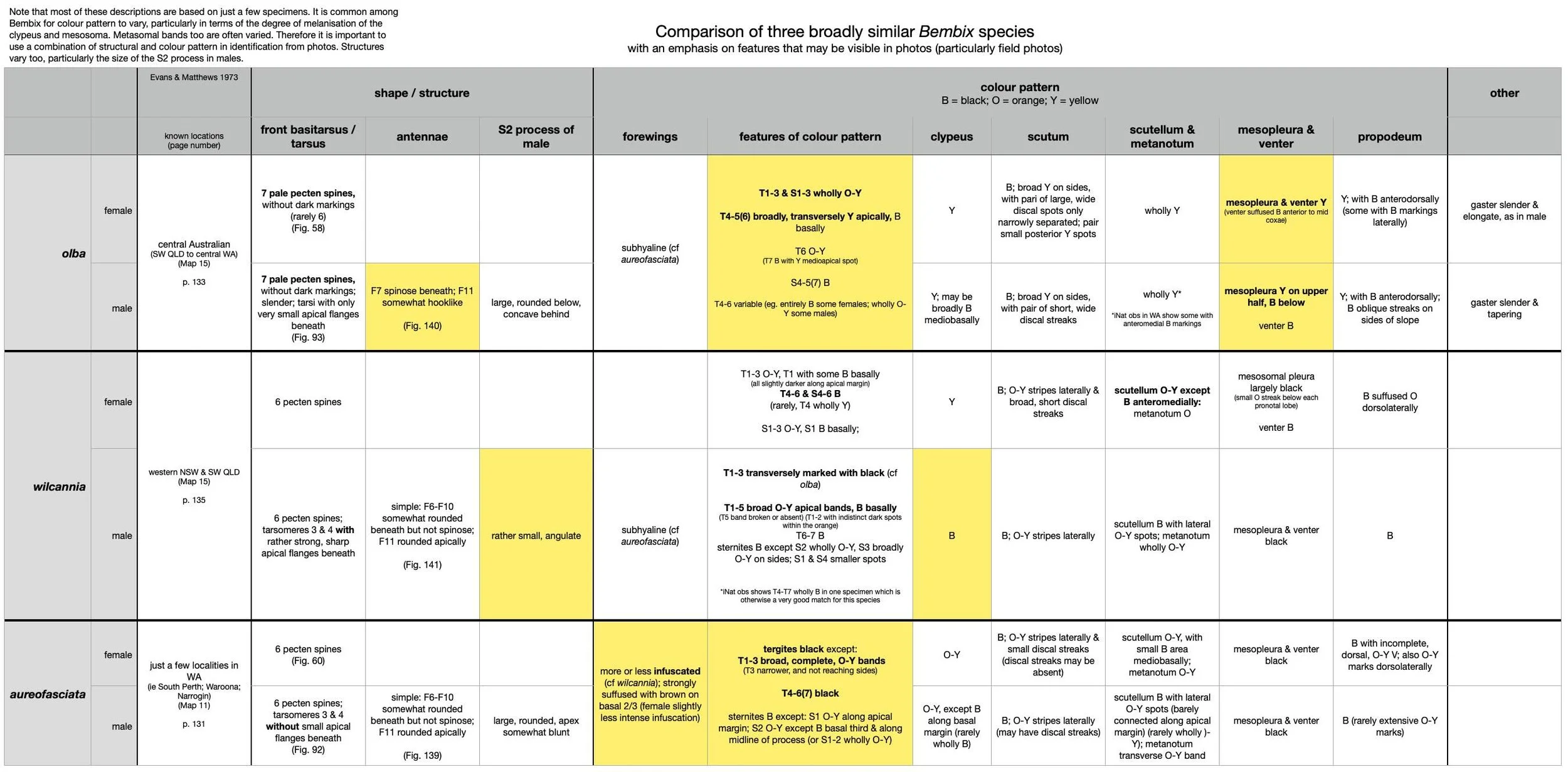 Following several iNaturalist observations of colourful Bembix, I was prompted to look a bit more closely at the differences between some of the candidate species. In particular, Bembix olba, B. aureofasciata, and B. wilcannia. All are extensively marked with orange, and they share many structural features.