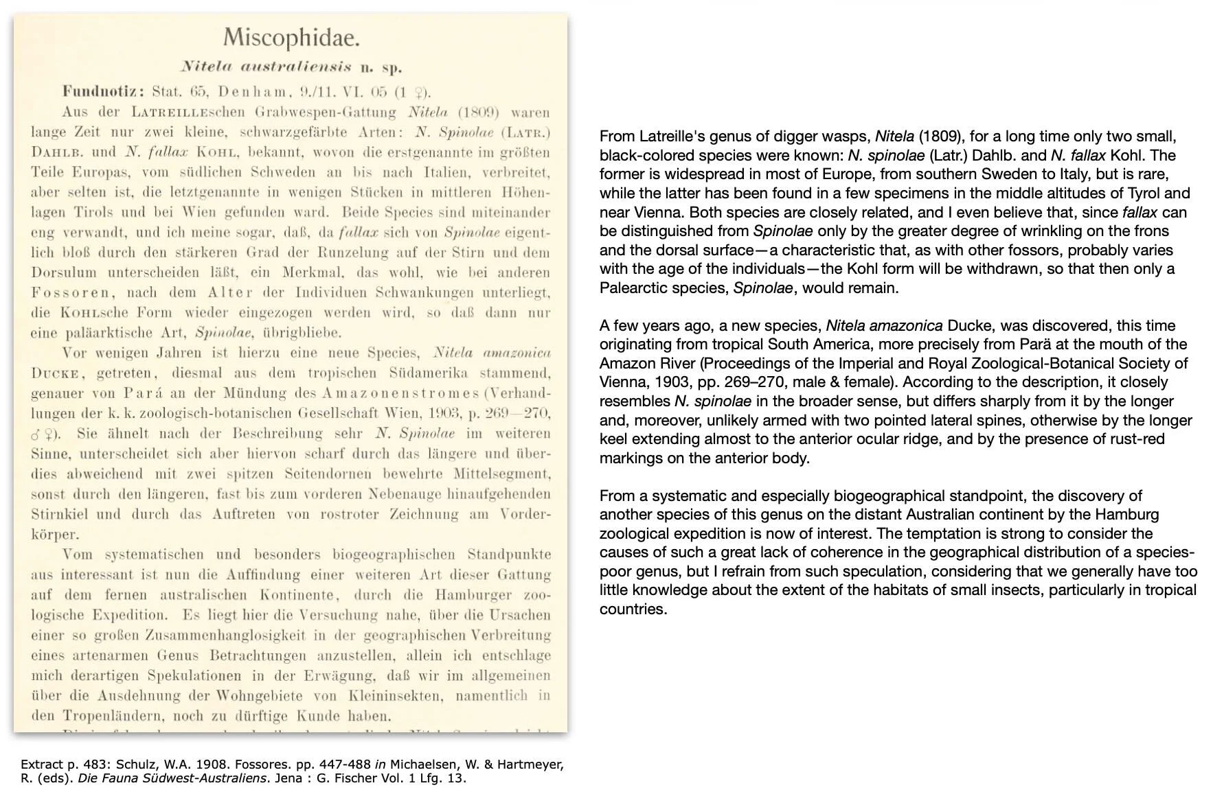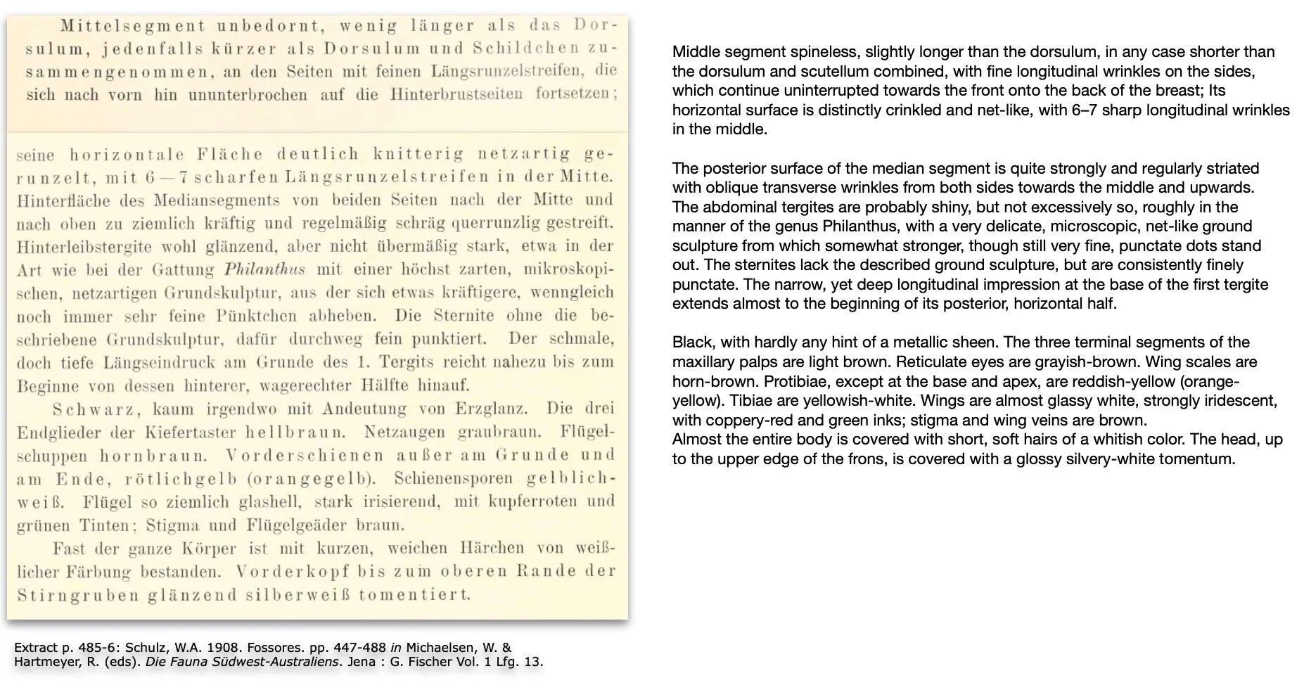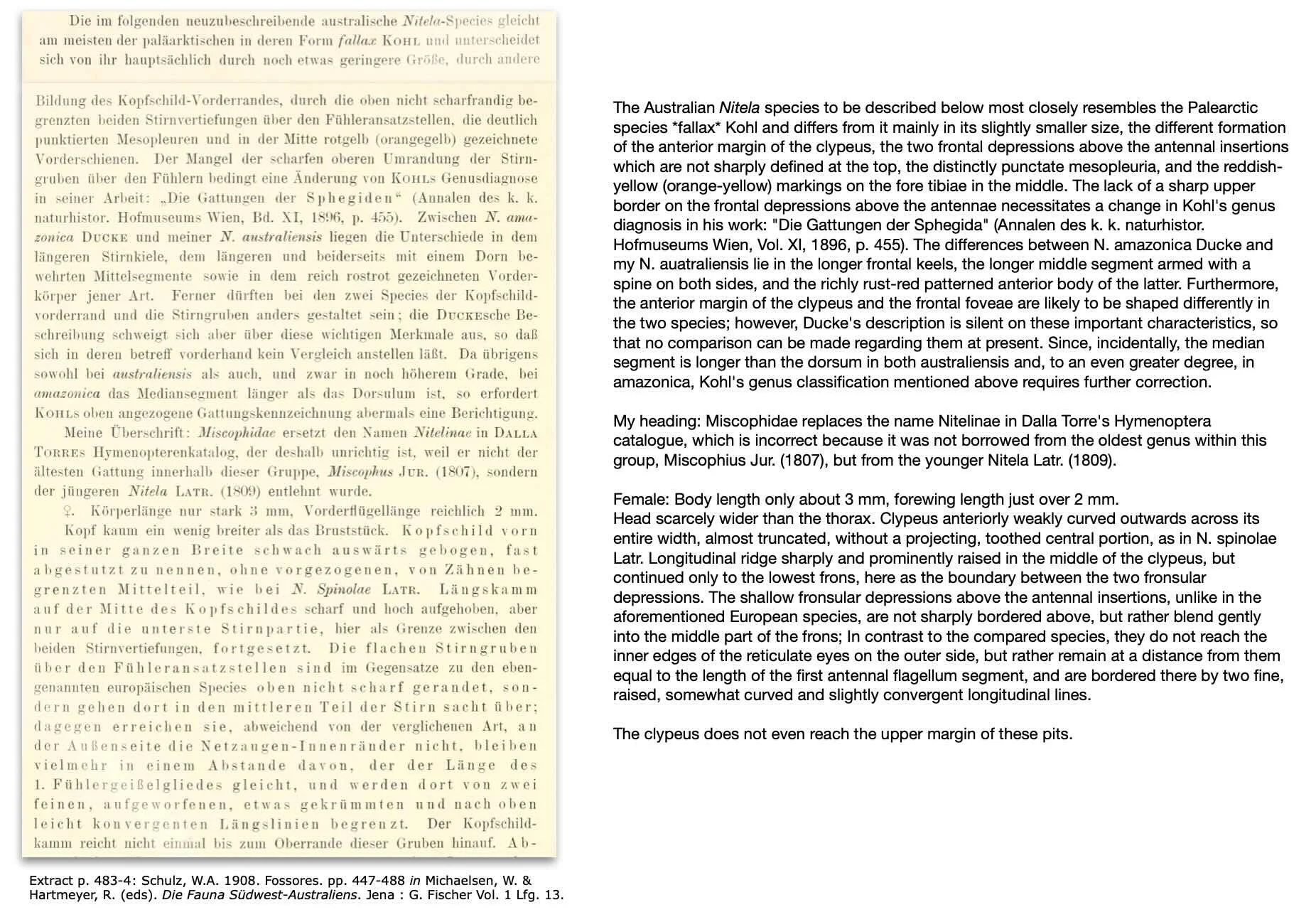 Schulz, W.A. 1908. Fossores. pp. 447-488 in Michaelsen, W. & Hartmeyer, R. (eds). Die Fauna Südwest-Australiens. Jena : G. Fischer Vol. 1 Lfg. 13