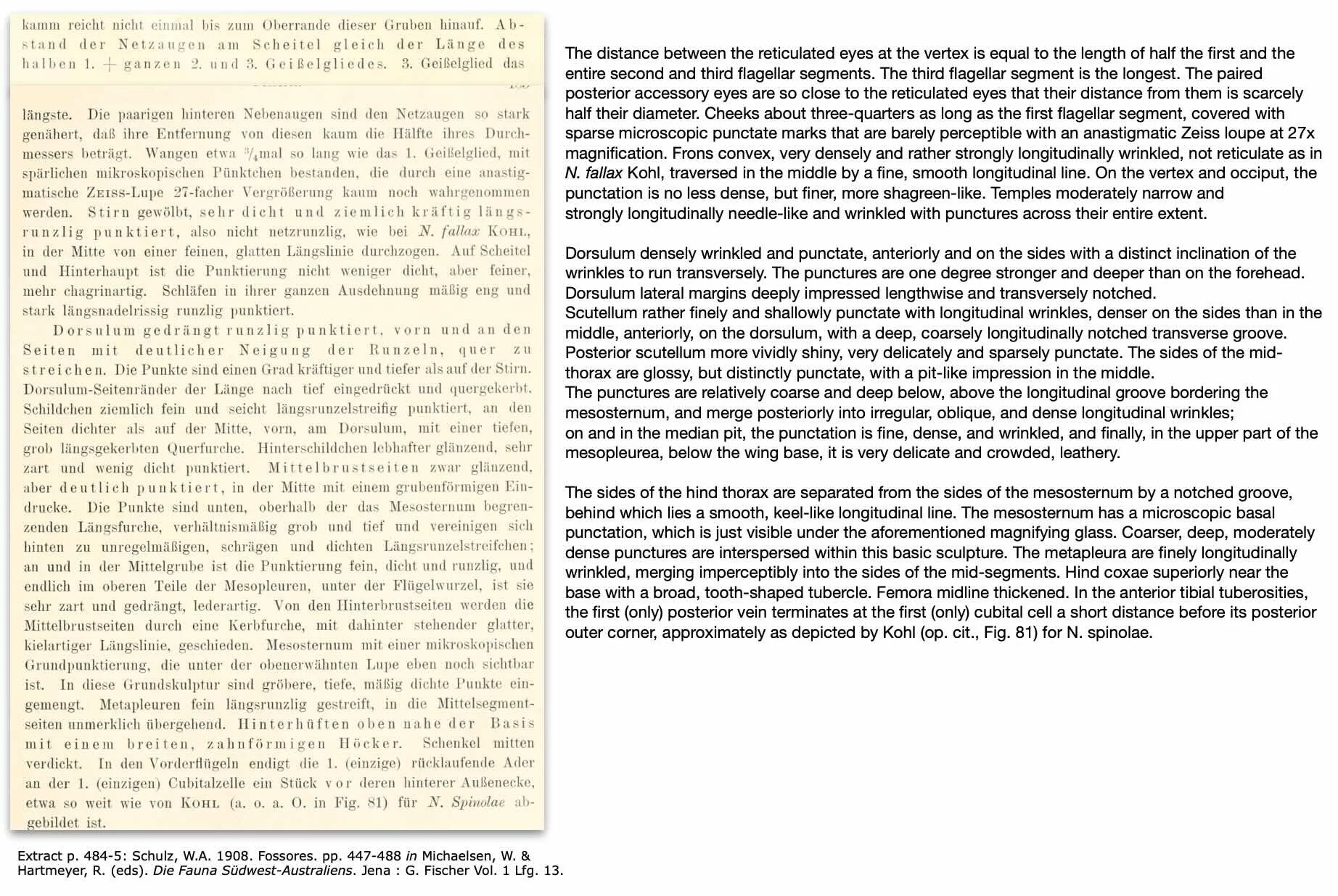 This contrasts with the N. australiensis holotype in which the frons is described as being ‘very densely and rather strongly longitudinally wrinked, not reticulate as in N. fallax Kohl’ (Schultz 1908).