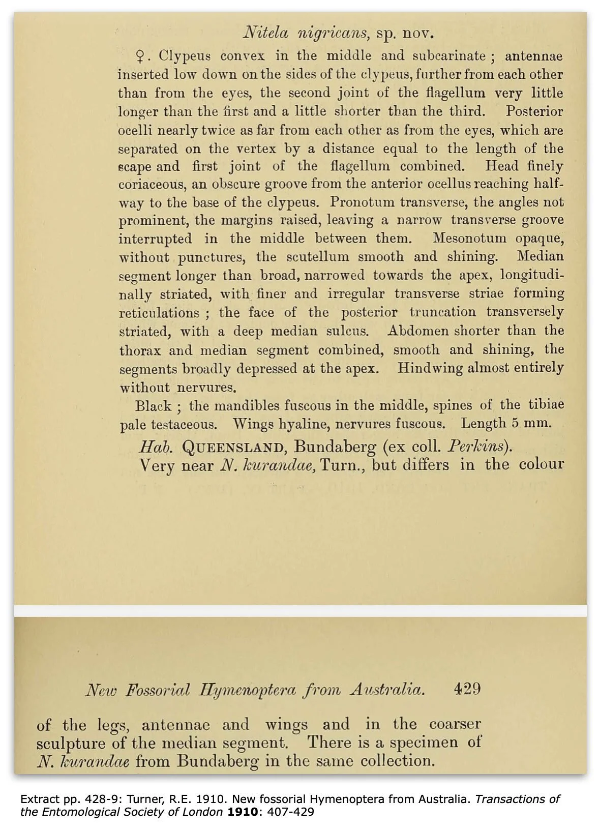 Turner, R.E. 1910. New fossorial Hymenoptera from Australia. Transactions of the Entomological Society of London 1910: 407-429