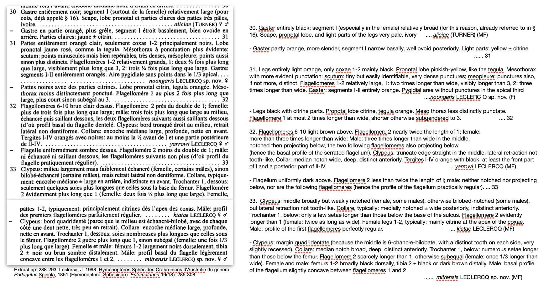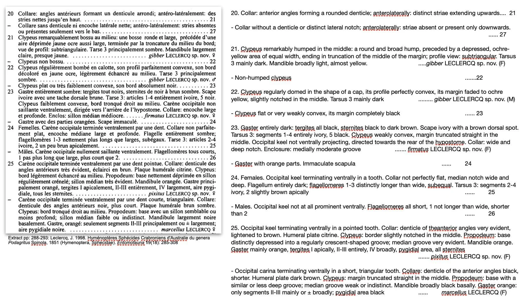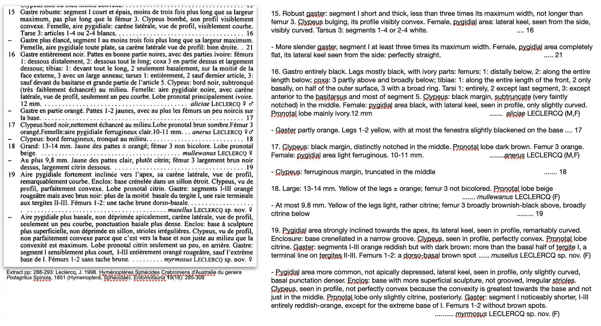 The majority of Australia’s Podagritus species were described by Leclercq (1955, 1957, 1970, 1998), with just six new species added since 1998, all from Western Australia (Pulawski 2023, 2025). In preparing the summary table below I am therefore relying heavily upon Leclercq’s most recent revision (Leclercq 1998).