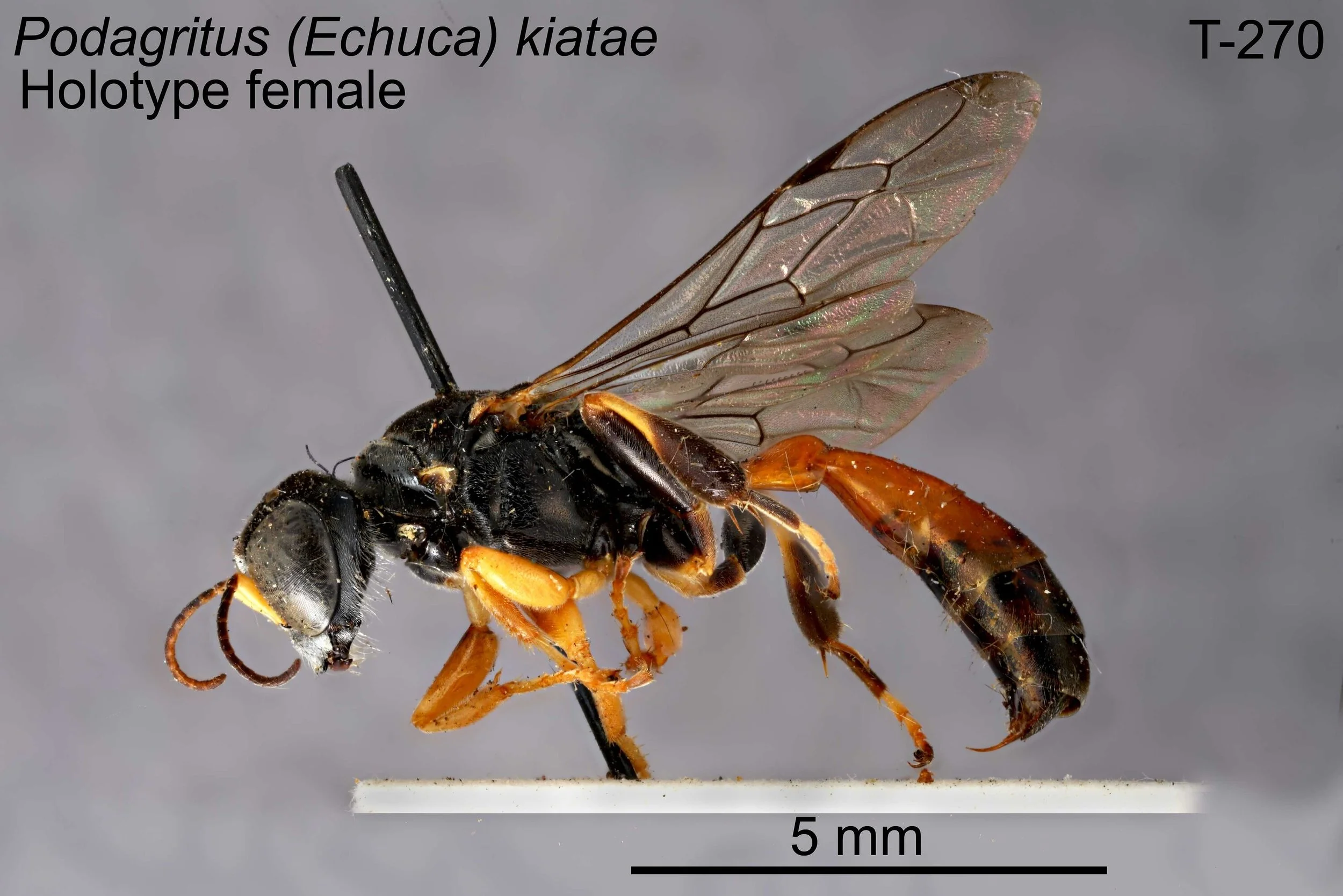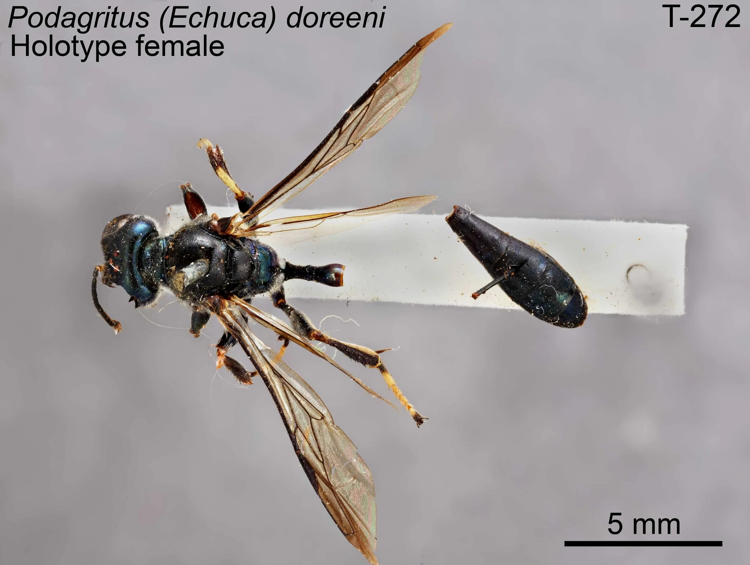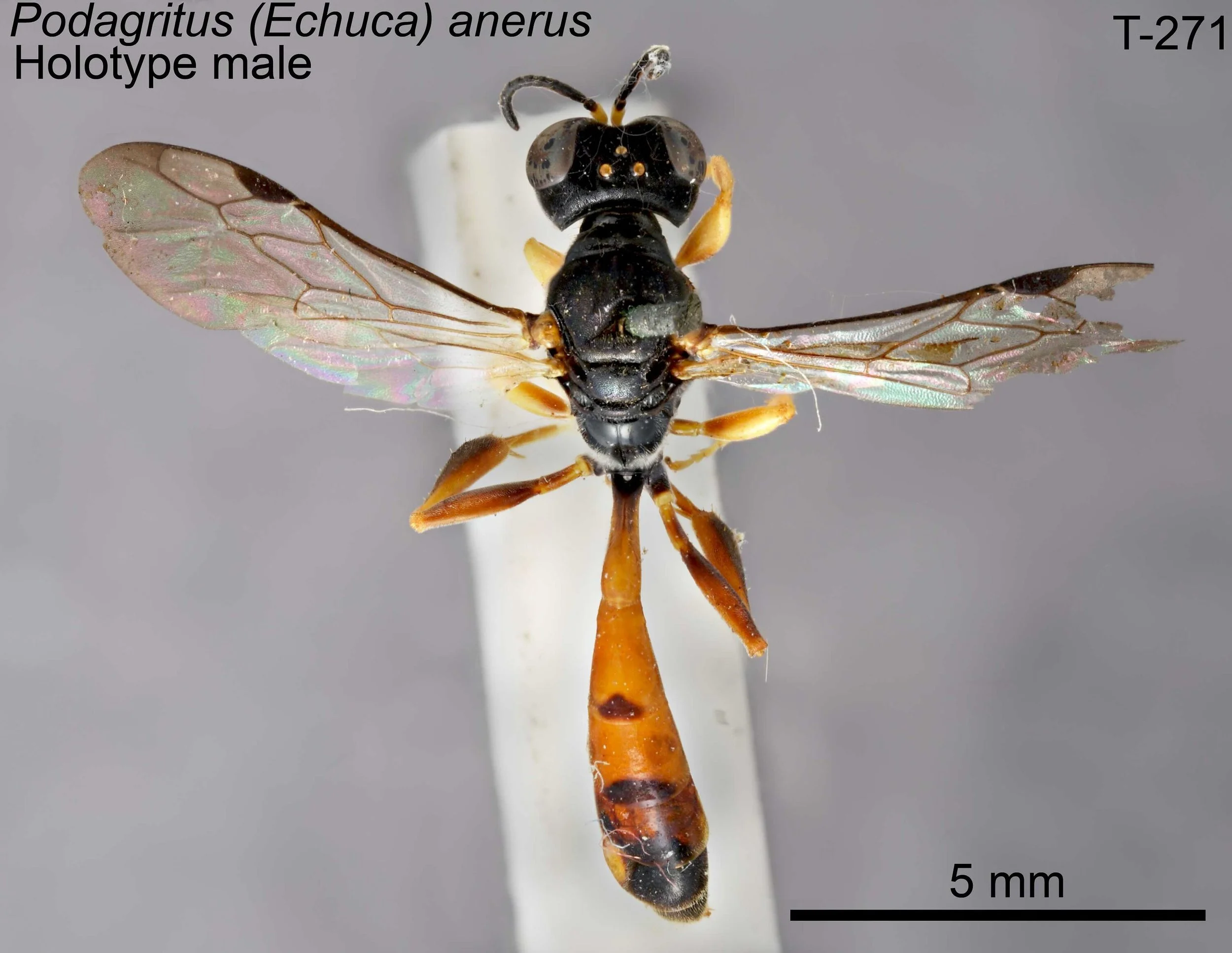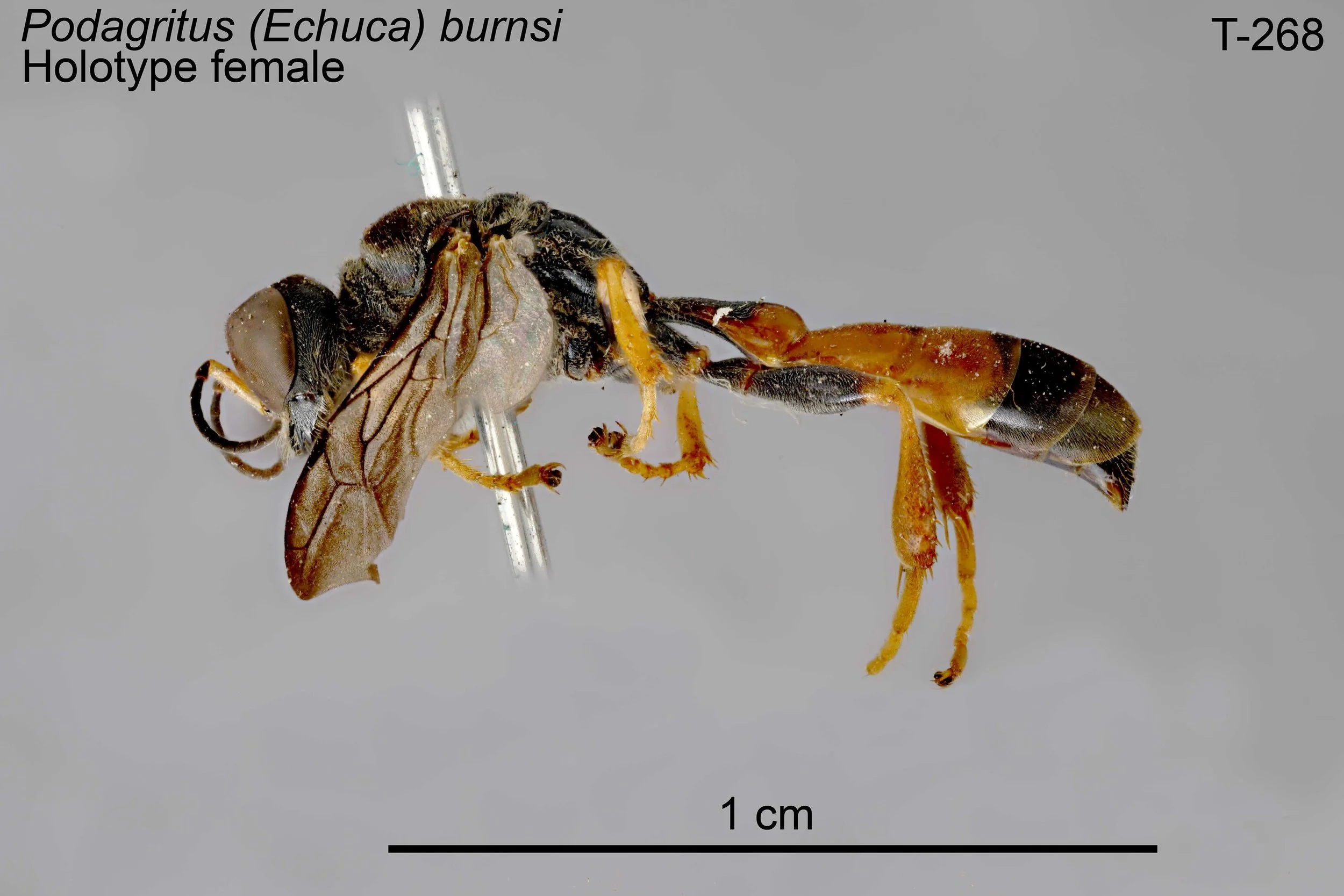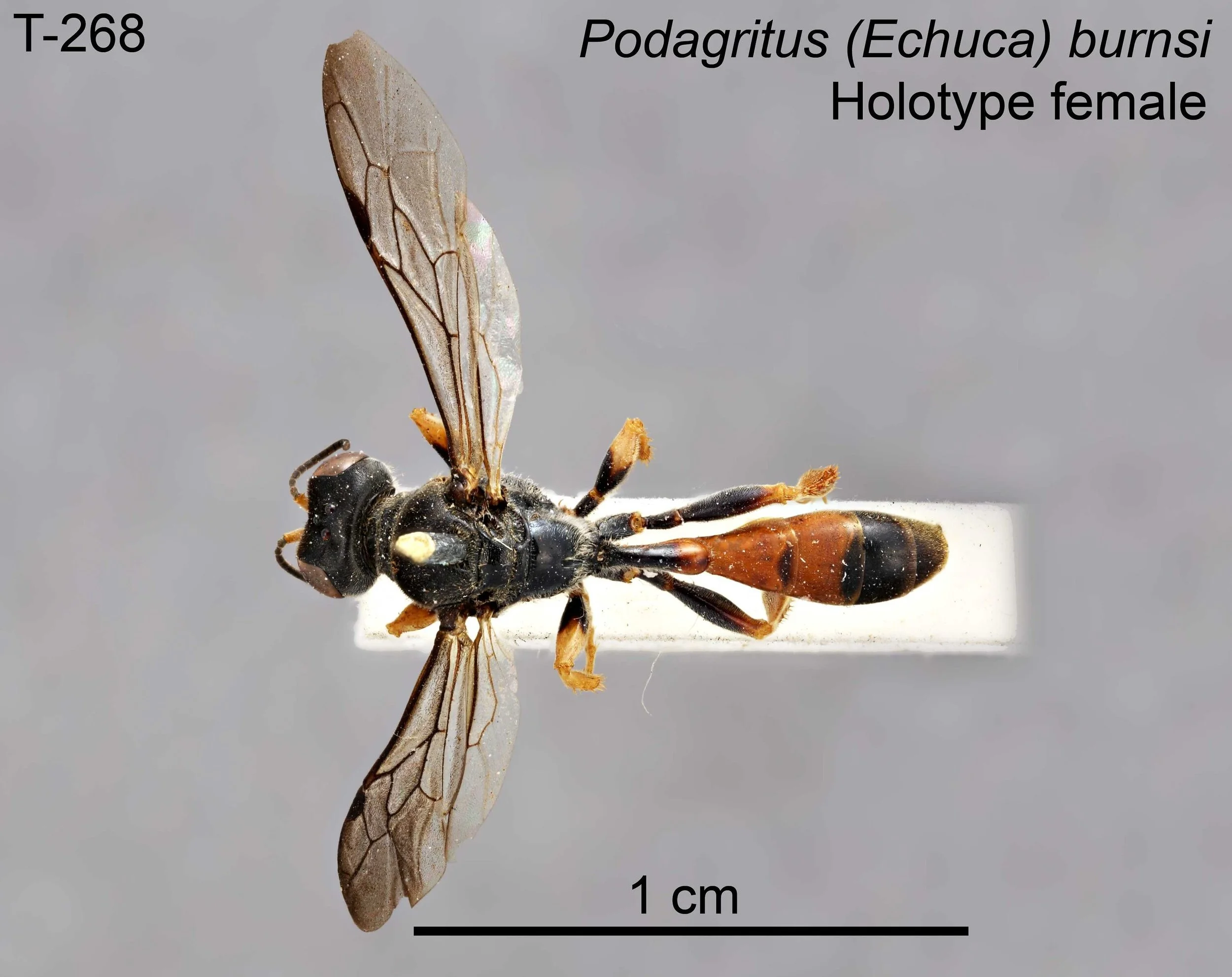 Podagritus is one of 13 Australian genera in the tribe Crabronini (Crabronidae: Crabroninae). Note that under a revised taxonomy (Sann et al. 2018), the tribe will be elevated to the subfamily Crabroninae (Crabronidae). That aside, for more detail: