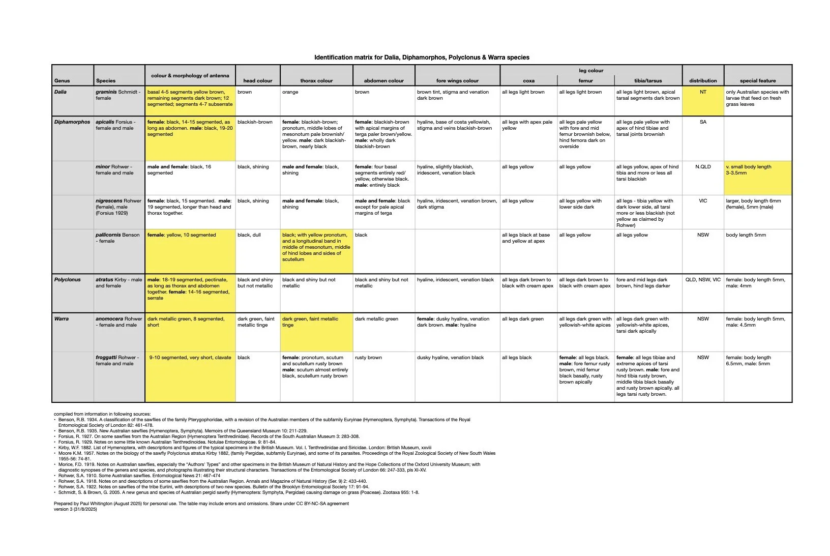 Schmidt, S. & Brown, G. 2005. A new genus and species of Australian pergid sawfly (Hymenoptera: Symphyta, Pergidae) causing damage on grass (Poaceae). Zootaxa 955: 1-8.
